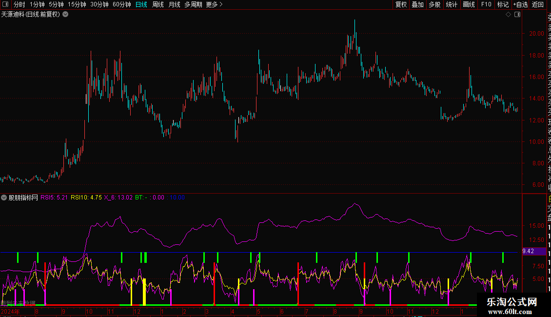 经测试,指标含有DRAWLINE画线未来函数,沙盘推演未发现信号飘移,下载观察信号是否稳定再使用;