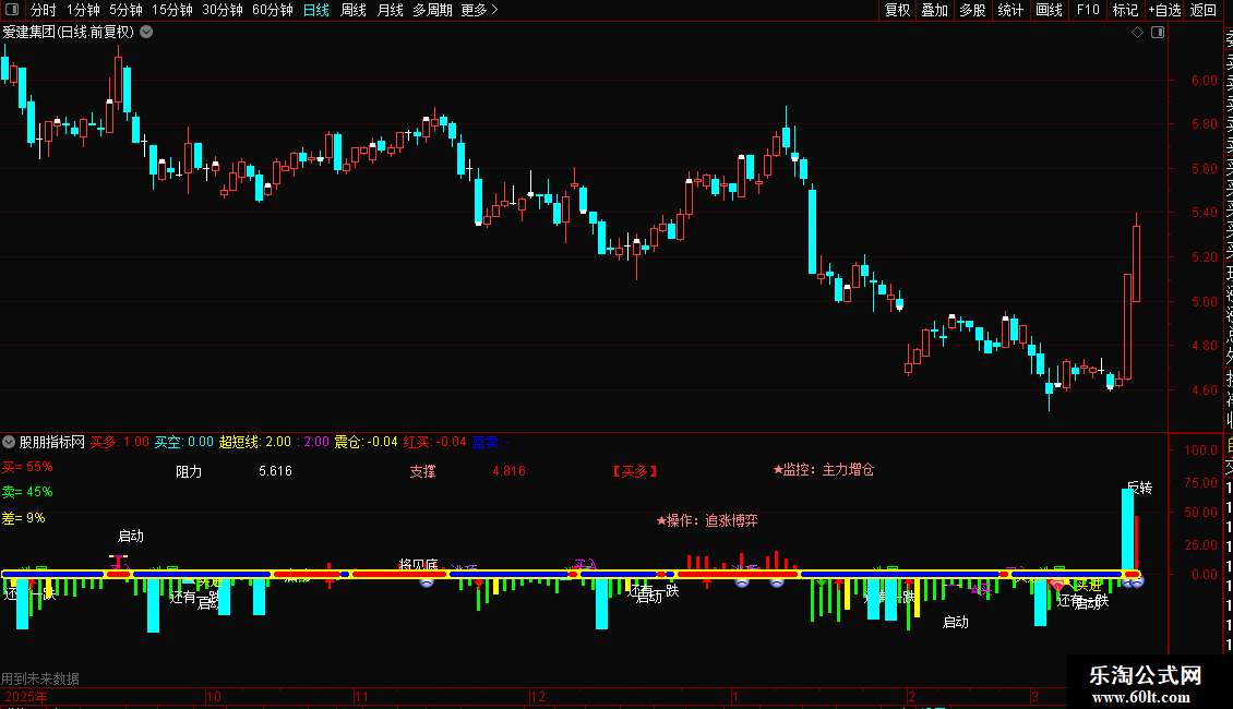 蓝卖: IF(VR4<VR5,-0.036,DRAWNULL),,COLORBLUE,LINETHICK5;