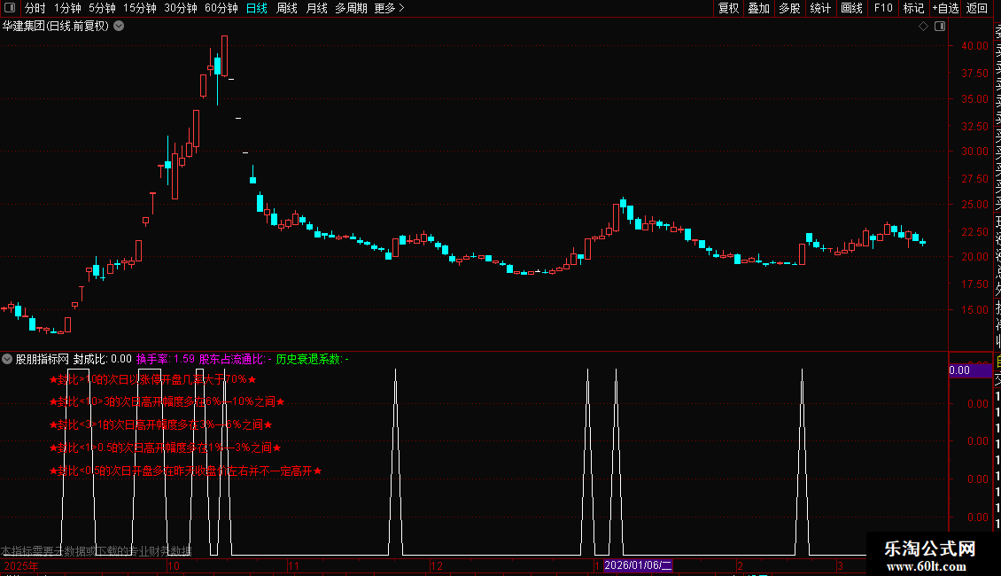 DRAWTEXT_FIX(1,0.05,0.38,0,'★封比<1>0.5的次日高开幅度多在1%—3%之间★'),COLORRED;