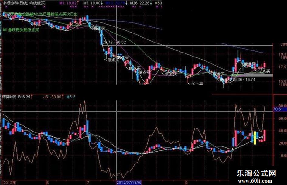 博弈 K 线的特点和用法 博弈 K 线把 K 线和筹码分布综合在了一起。K 线分析是通过线的长度和组合形 态来观察多空争夺的态势,把握未来趋势。博弈 K 线在继承 K 线分析方法的同时, 把高高低低的筹码分布看成是多空争夺的战场,抛开股价涨跌的价格空间,而把股 价看做是在筹码分布空间中的涨跌。筹码分布是动态变化的,多空双方的对抗就在 这个变化的空间中展开。博弈 K 线可以抓住多空对抗中的某些本质性特征,更准确 地把握多空对抗的状况。当然光看博弈K线如同我们平时看K线差不多。其中的内涵真正理解的并非容易。单纯的看博弈K线指导操作股市买卖尚有缺陷,今天将金昌九和北沙所写的新编KDJ结合应用则可以很清晰的看出哪里是买入的时机,哪里是卖出的高位。好了,废话就不多说了。希望这些说明能帮助你在实际应用中有所进益!