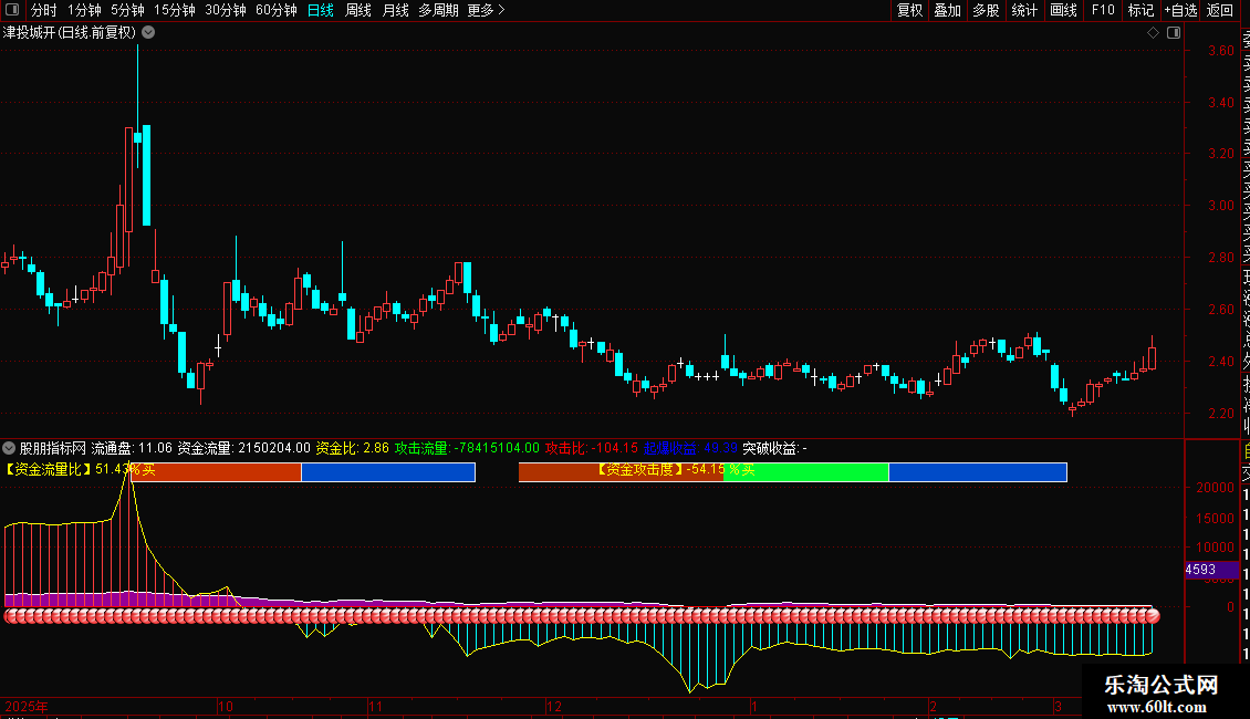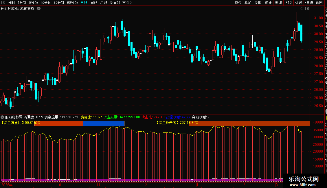 可以查看当天分时资金流量情况,攻击比越大当日走势越强,攻击比小说明当日走势偏弱;