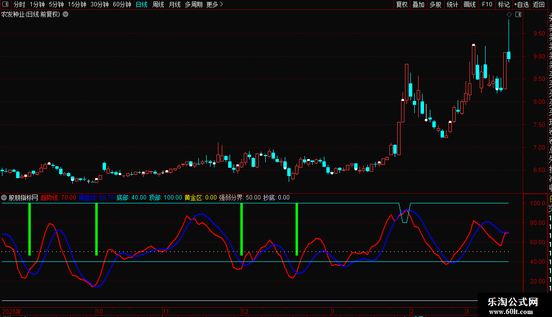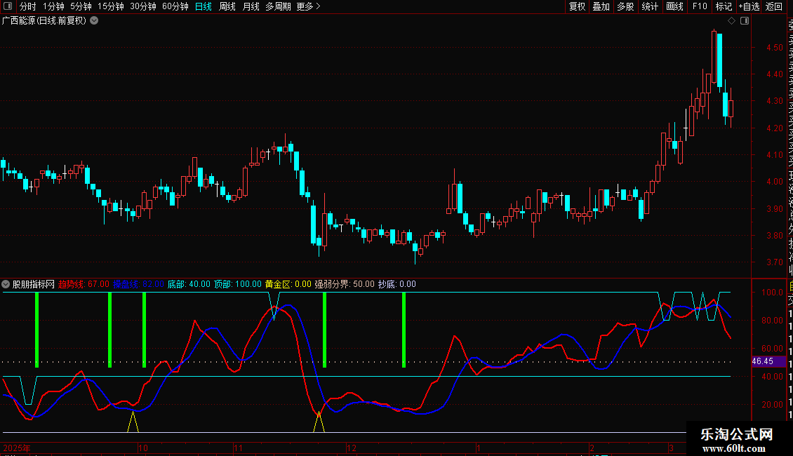 底部:IF((趋势线-VAR6<(-65)),20,40),COLORF0F000;
