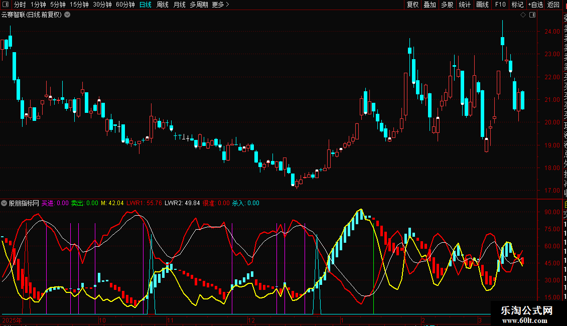 买进:IF(D<25 AND CROSS(K,D) ,80,0),COLORMAGENTA,STICK;