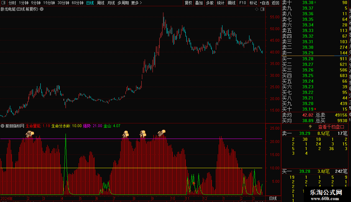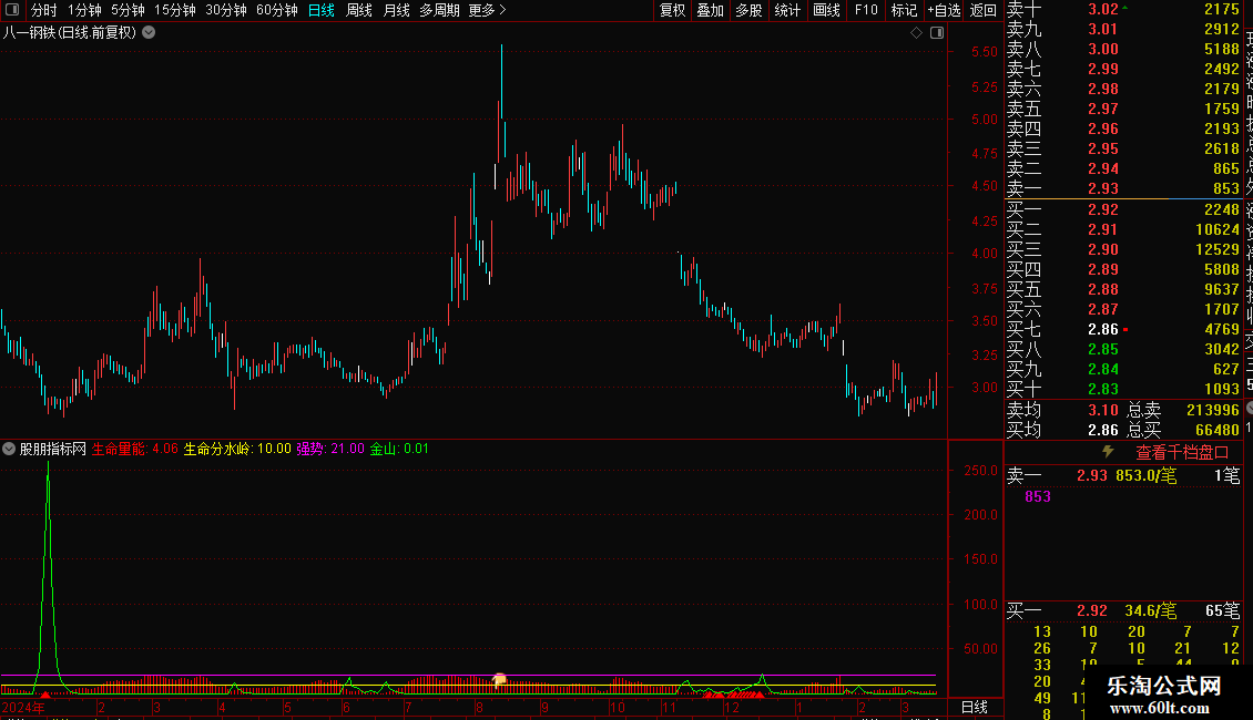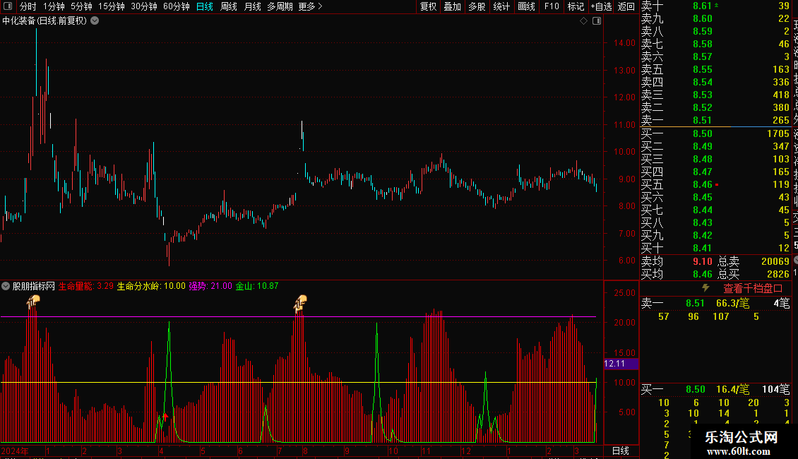 通达信监测大盘顶 生命量能副图指标 源码 通达信 附图