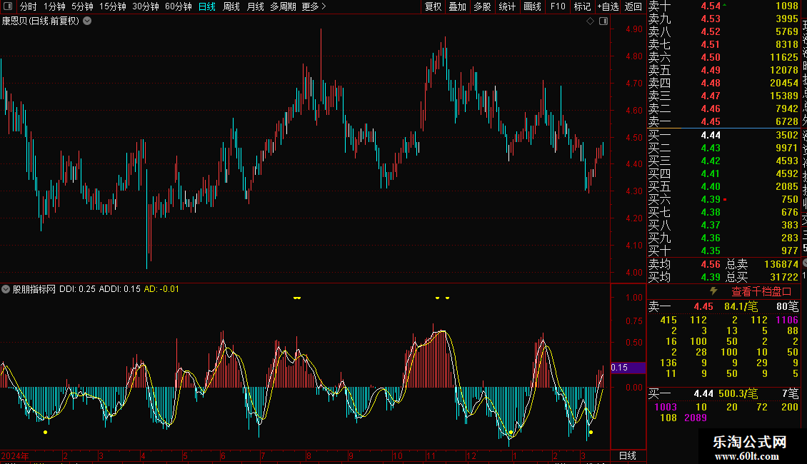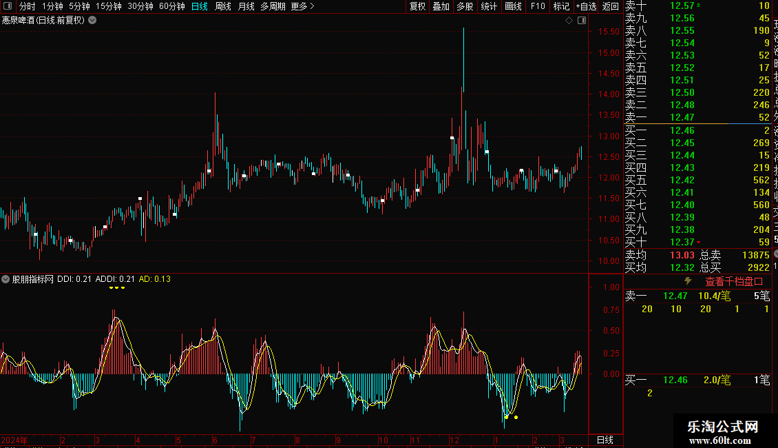 DDI柱状线,由正变负,卖出信号;由负变正,买入信号。