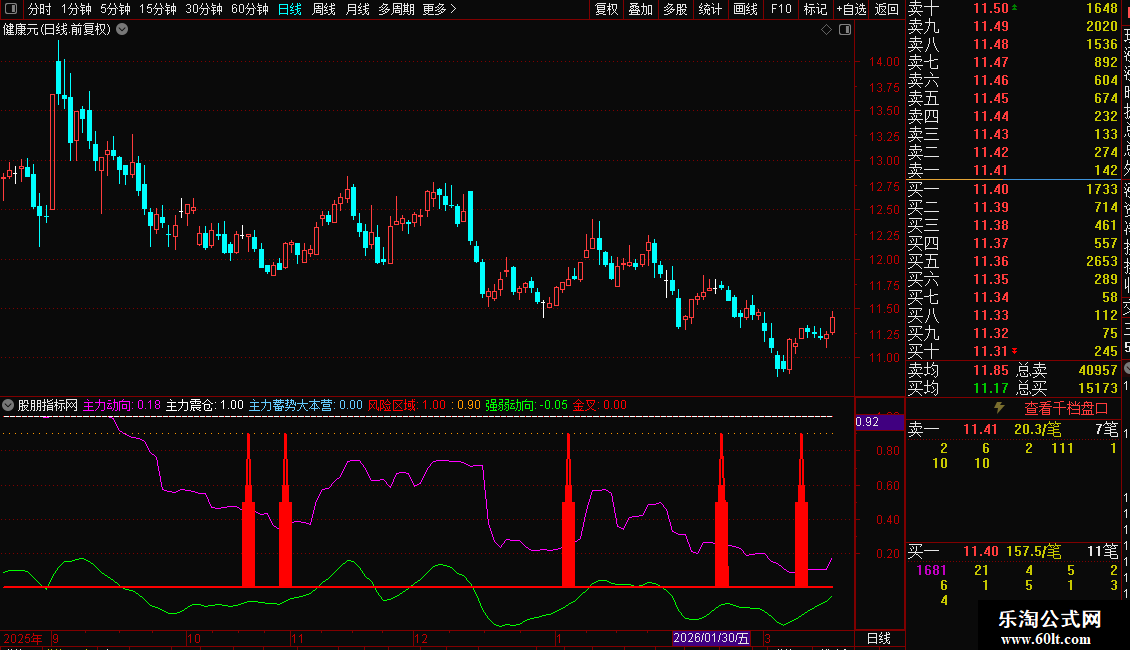 金叉:IF(CROSS(VAR11,VAR12) AND (VAR11<40),0.9,0),COLOR0000FF,LINETHICK2;