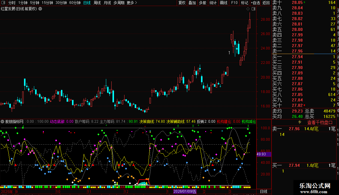 2、中间4个横线的数值分别是36、44、56、71.分别代表决策曲线的运行在71以上的高位风险区、56-71强势区、44-56弱势区、36以下的超跌区