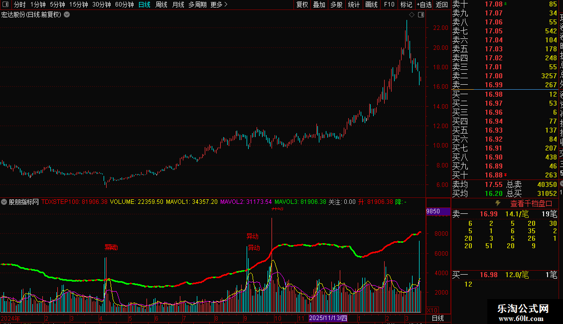 DRAWTEXT(关注=1,VOLUME+10000,'异动'),COLORRED;