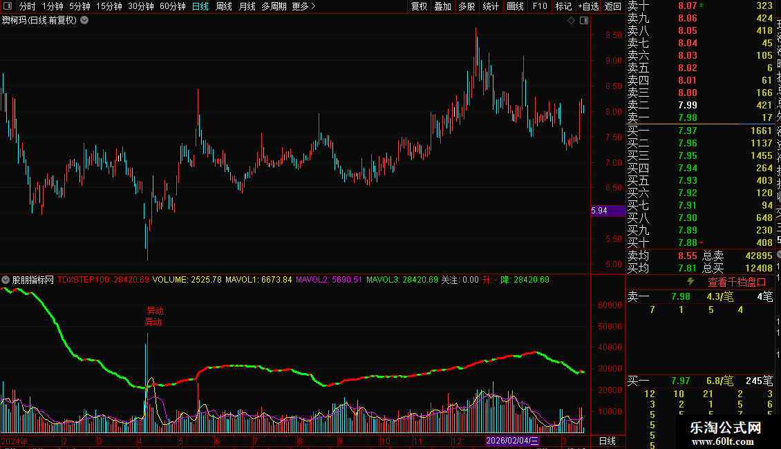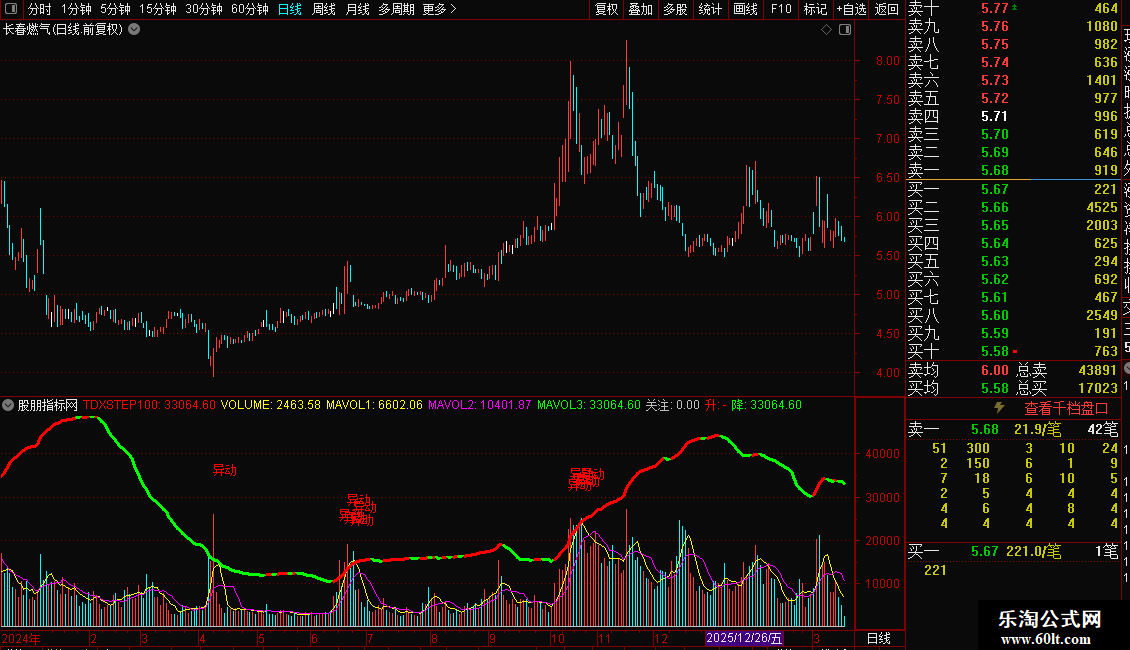 TDXSTEP100:MA(VOLU,60)*6*VAR1,,COLORRED;