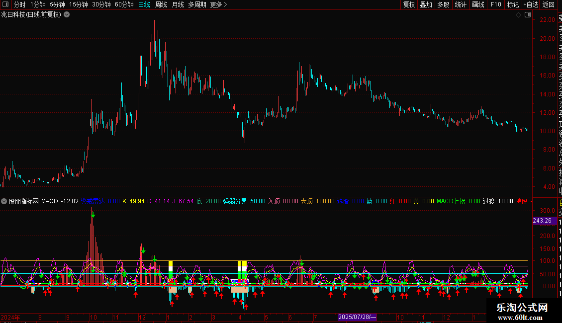 备注:K值,D值,J值显示均是数值,而非金额。其它指标也是如此。