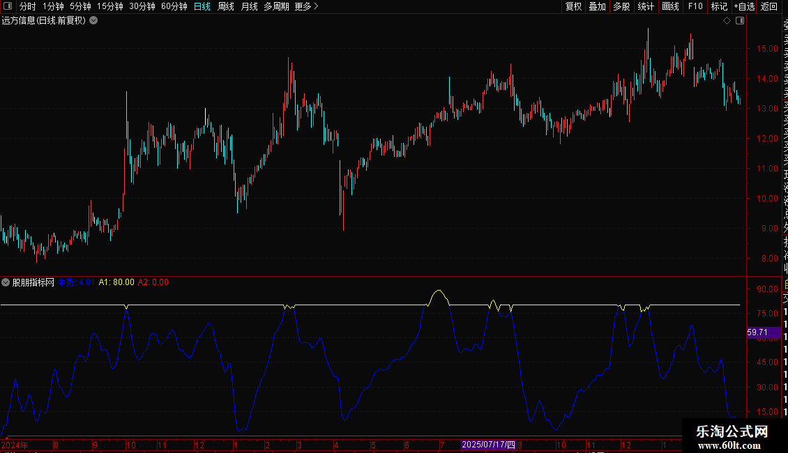 A1:IF(牛势>76,牛势,80),COLORYELLOW;
