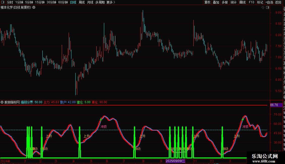 DRAWTEXT(CROSS(主力,30) AND 散户<主力,40,'上升'),LINETHICK2,COLOR00CCFF;