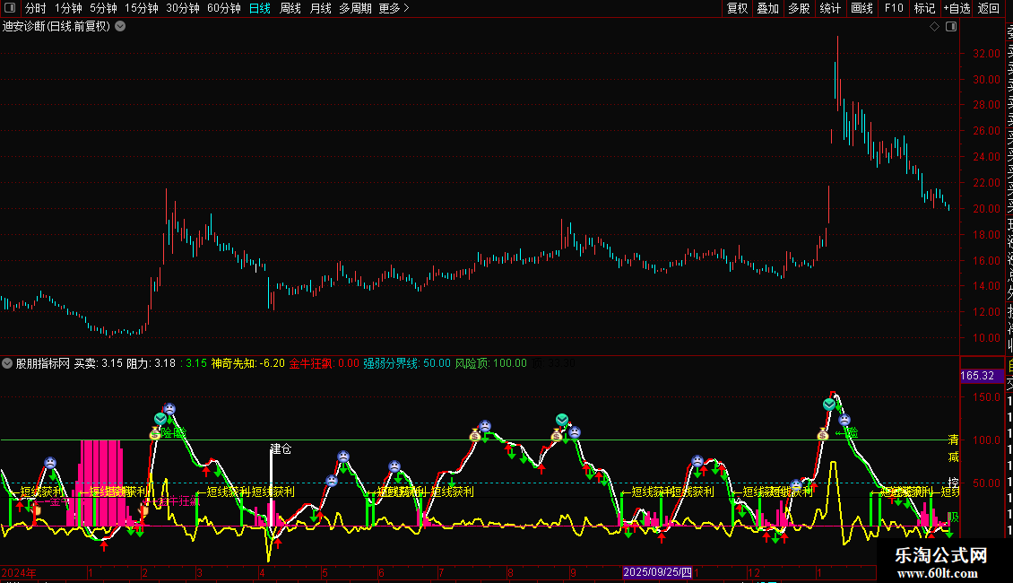 神奇先知:(CLOSE-MA(CLOSE,5))/MA(CLOSE,5)*250, COLORYELLOW,LINETHICK2;