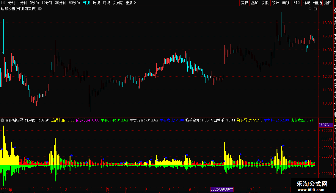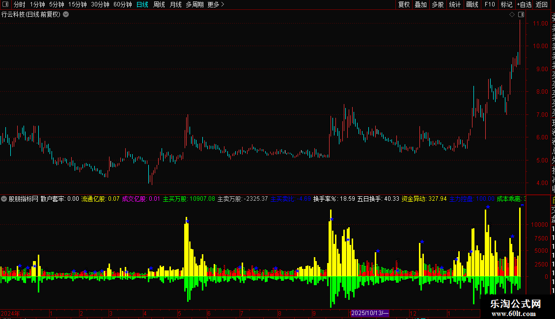 预测量:STICKLINE(IF(DYNAINFO(7)=CLOSE AND DYNAINFO(10)=AMOUNT,VAR1,VAR2),VAR1,0,7,1),COLORGRAY;}