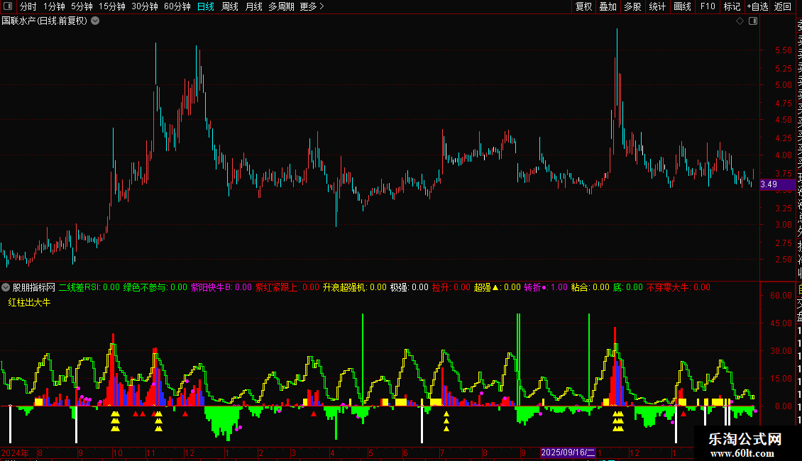 二线差RSI:IF((BB-AA)/AA>N,50,0),STICK,LINETHICK2,COLOR00FF00;