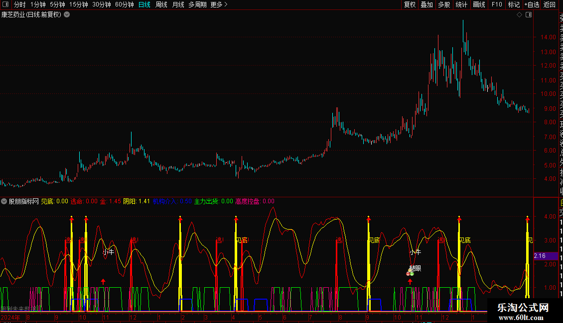 本指标绝不含未来函数,一般只需要按图索骥就可以,完全傻瓜式操作。所以我也特取名为射雕英雄传之华山论剑,天下武功唯我独尊。指标操作方法不我就说明了,自己多翻翻股票去对照感悟一下,赢在哪里亏在哪里一目了然。