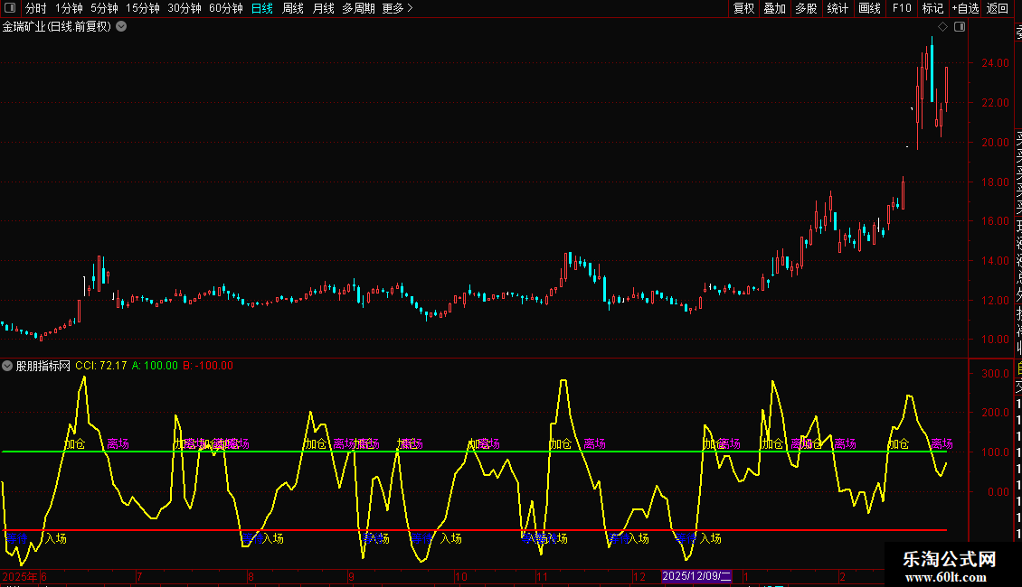 指标用法:100以上超卖区,超卖区关注进场、离场信号,结合指标背离判断高点,-100以下超买区,超买区关注等待、进场信号,最好-100以下上穿效果最佳。