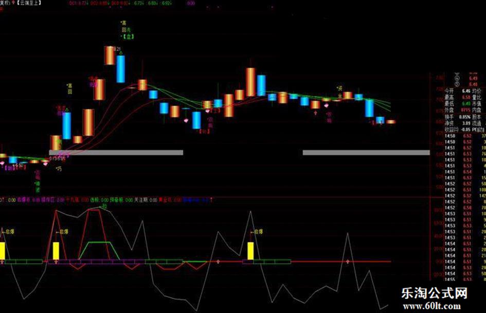 操作说明:分享偶过去学习的一个公式,简单优化了一下,信号相对准确,用来参考个股走势还不错,缺点信号有时强势高位,实战注意结合多指标甑别判断