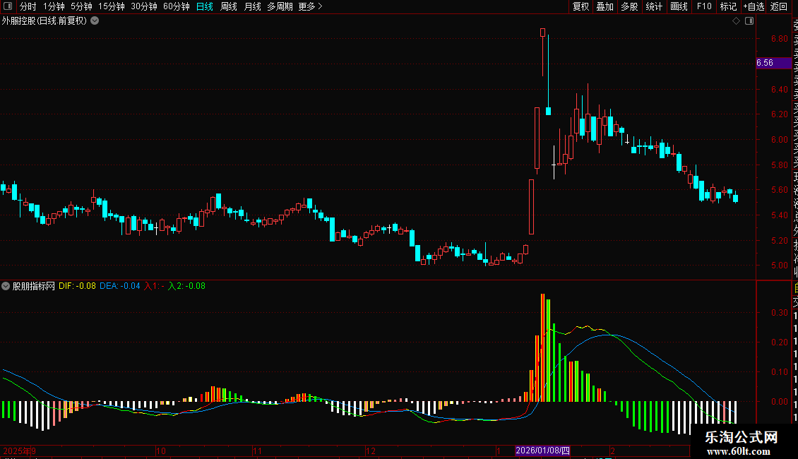 STICKLINE(落,0,MACD,1,0),COLORWHITE;