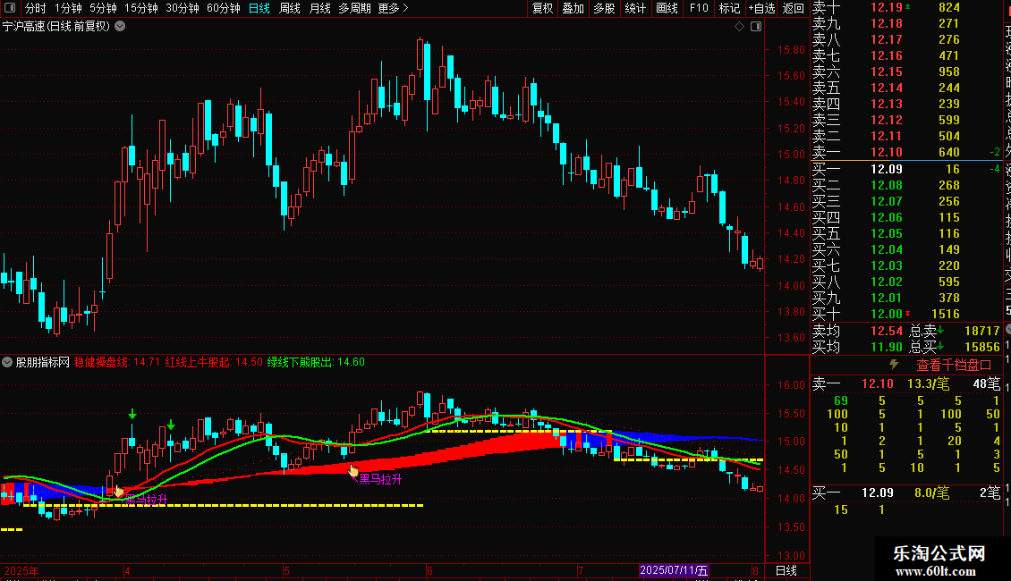 DRAWTEXT (拉升一号,L*0.97,'↖黑马拉升'),COLORFF00FF;