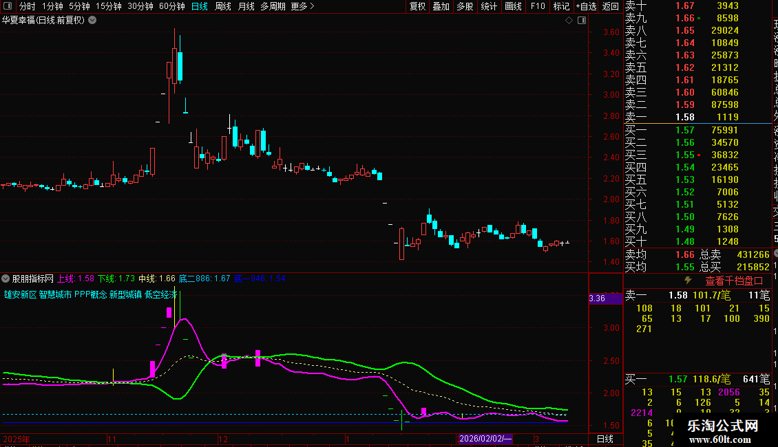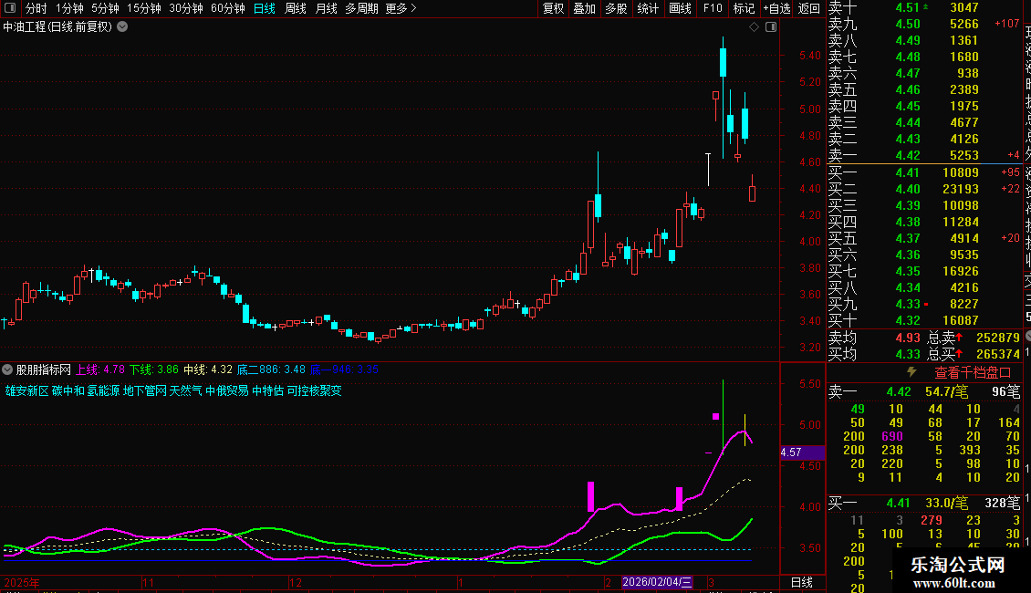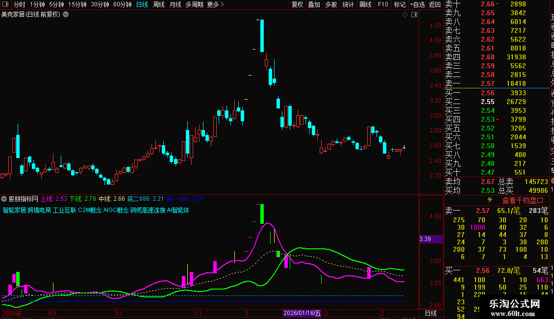 使用方法:紫色上线 上穿白线和绿线,为买入机会。辅助当下热点题材,收益不错。同时,K线亮色显示涨停和跌停,注册制20%也适用。
