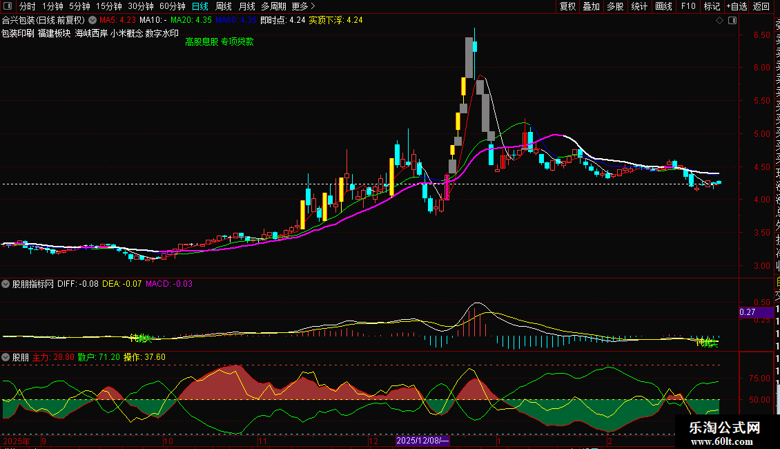 DRAWTEXT_FIX(TJ,0,0,0,HYBLOCK);{在屏幕左上角显示所属行业板块}