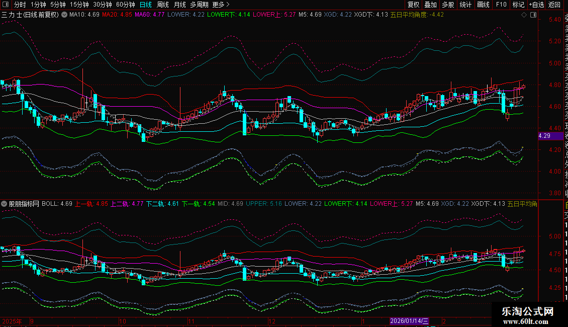 上二轨:BOLL+STD(CLOSE,20),COLORMAGENTA;