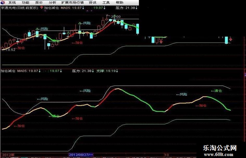 DRAWTEXT(减仓,HIGH*1.02,'←风险'),COLORCYAN;