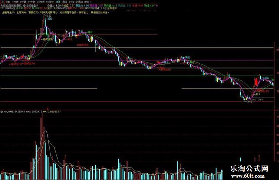 DRAWTEXT(减仓,H,'←减仓'),COLORCYAN;