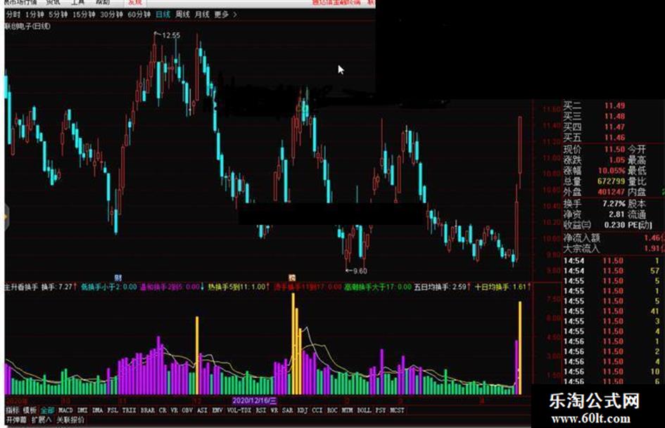 热换手5到11:换手>5 AND 换手<11,COLORYELLOW,NODRAW;