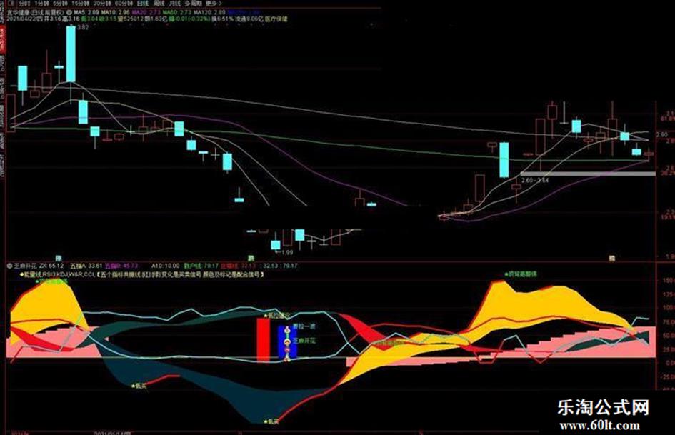 五个指标共振线.[红].[绿].变化是买卖信号.颜色及标记是配合信号