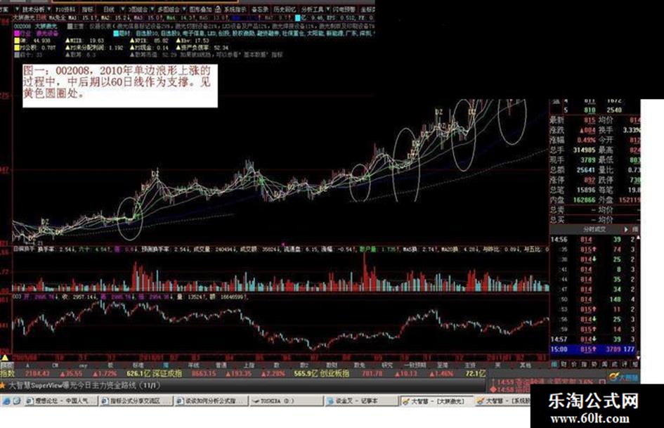 (4)大盘牛势的市场,向下回档,这个时候,大周期的均线,如30日、60日、120日,会给出心理暗示:有支撑。周