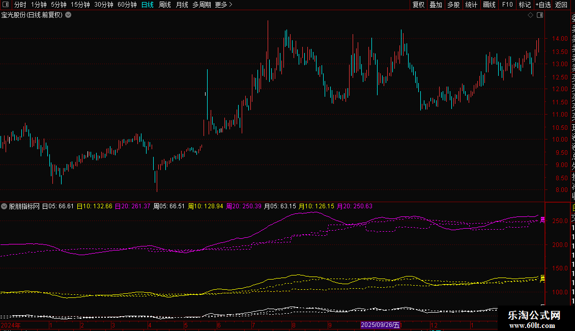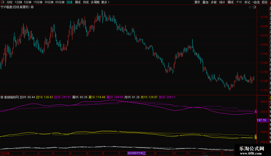 日线上实现跨周期显示“周均线”和“月均线”,不是市面上引用week和month函数的写法,手机通达信也可以使用。