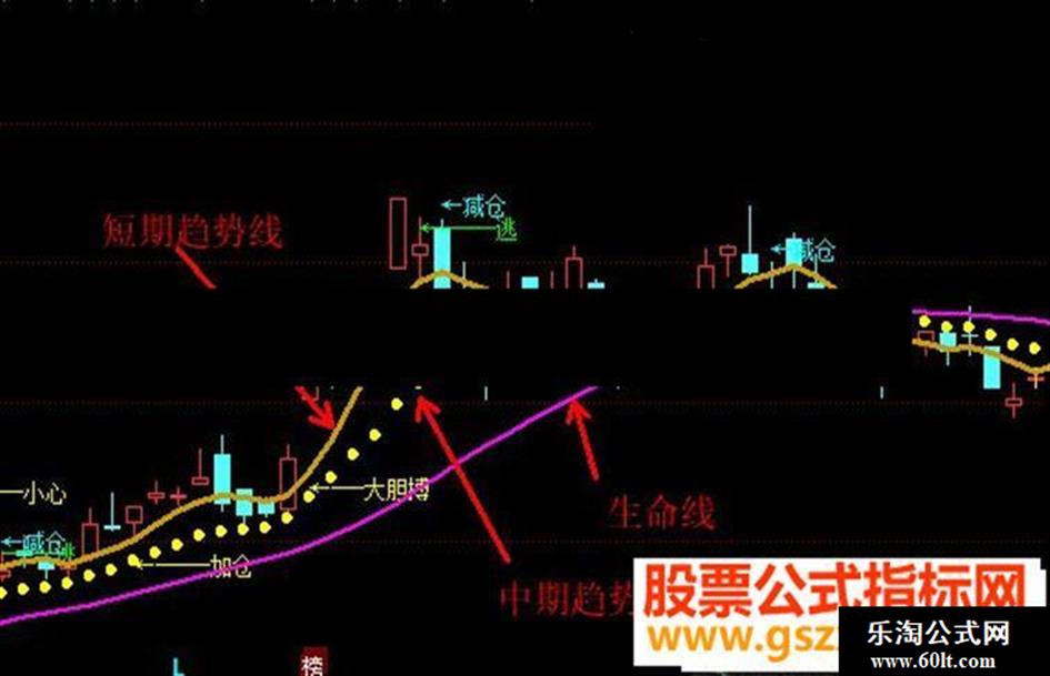 三线关系:类似于均线的作用,当三线位于股价下方或短期/中期趋势线上穿生命线为看涨行情,反之当三线位于股价上方方或短期/中期趋势线下穿生命线为看跌。