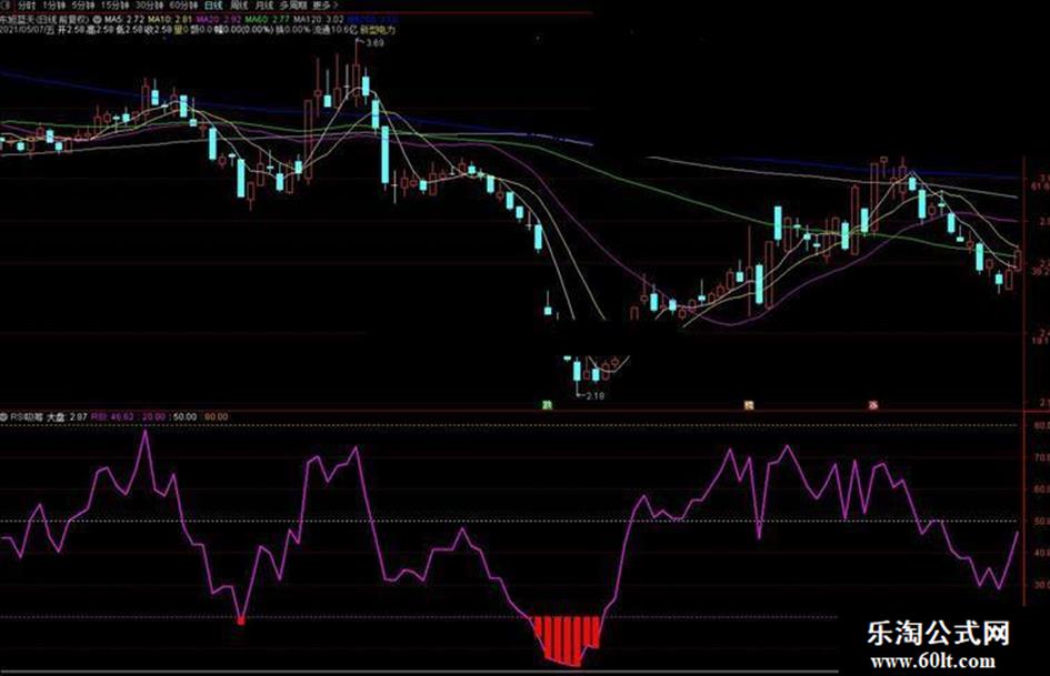 STICKLINE(RSI<20,20,RSI,2,0),COLORRED;