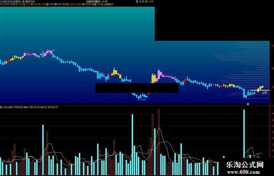 止损:STICKLINE(ISLASTBAR,HHV(C,5)*0.97-0.01,HHV(C,5)*0.97,50,0),COLORWHITE;