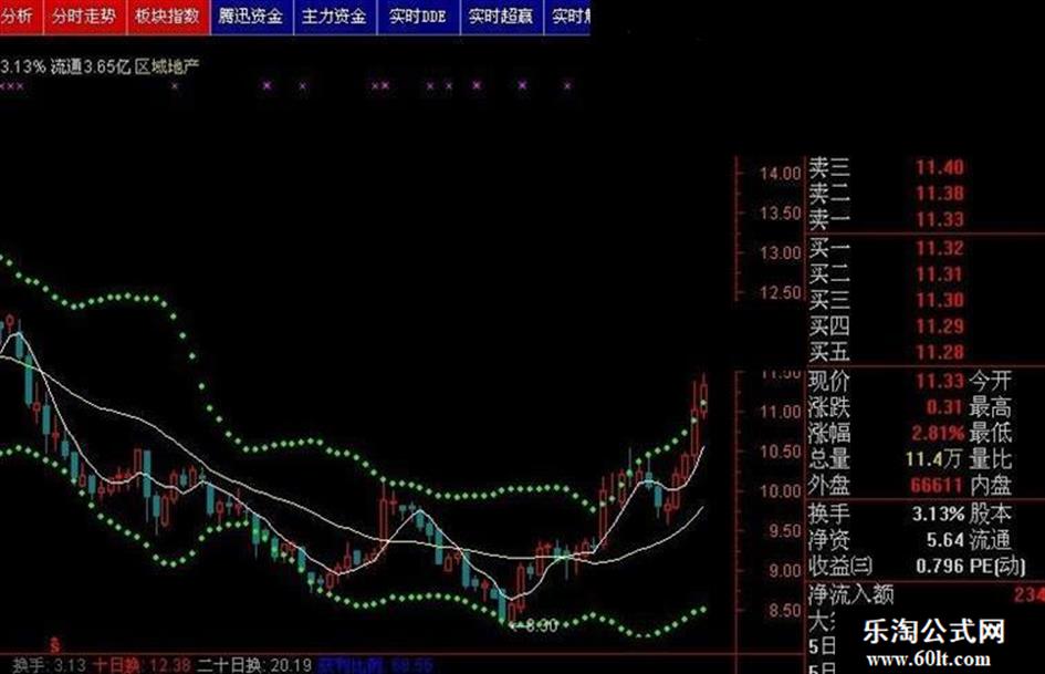 下轨:中轴-2*STD(CLOSE,21),COLOR00FF00,POINTDOT,LINETHICK4;