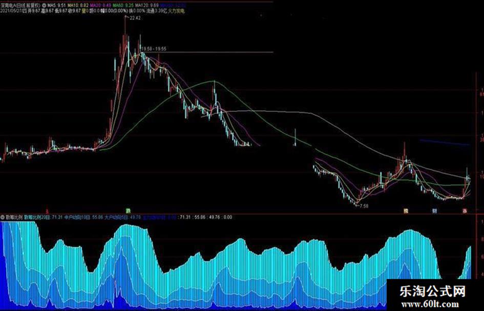 散筹比例20日:100*(V4/V5),STICK,LINETHICK4,COLORFFEE00;