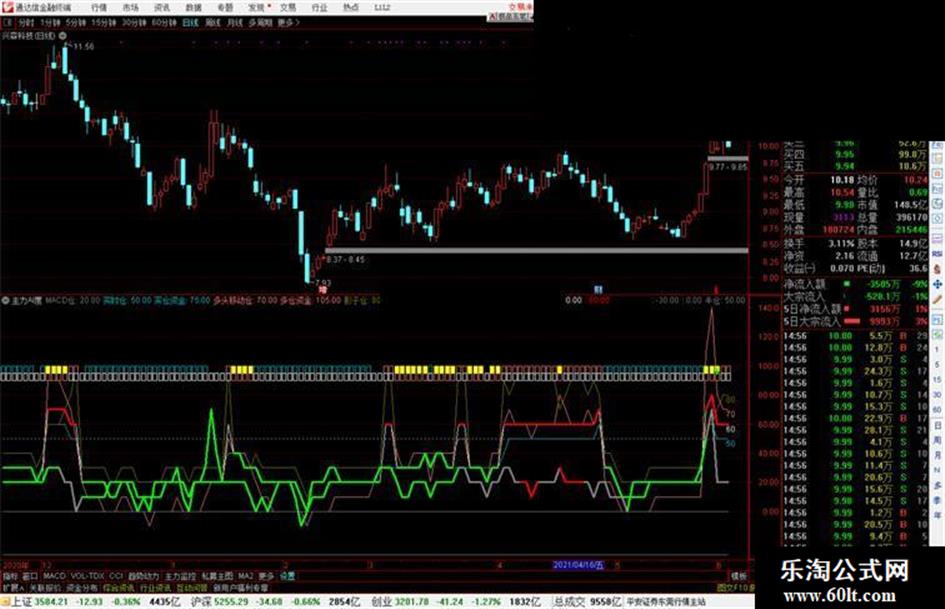 IF(MA(C,5)<MA(C,60),MACD仓,DRAWNULL),COLORGREEN,LINETHICK3;