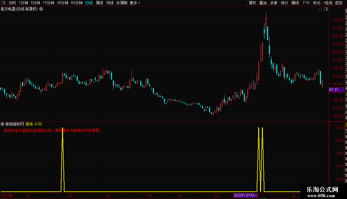 DRAWTEXT_FIX(1,0.01,0.01,0,'游资资金与超级资金同时出现,意味着多方都有拉升的意愿.'),COLORRED;