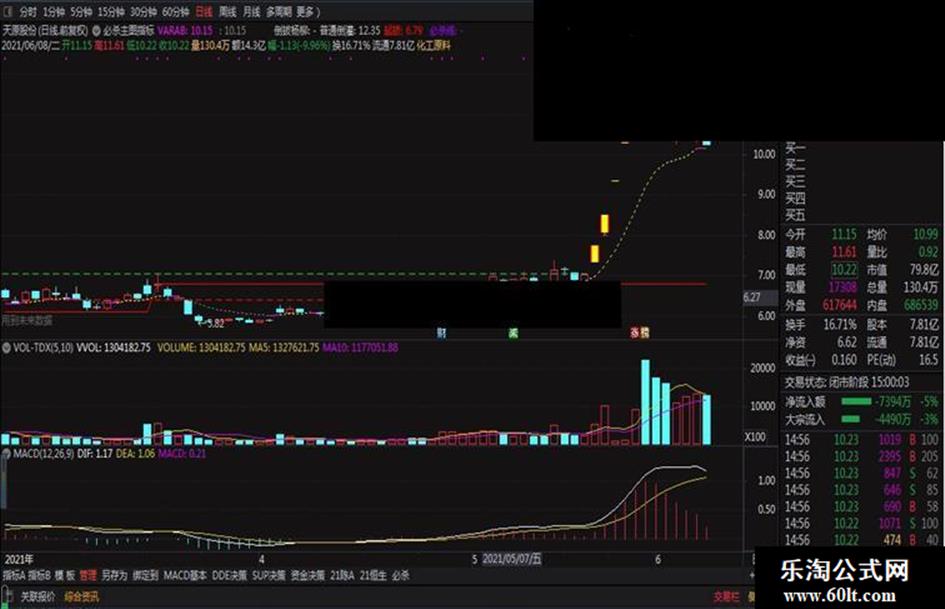 量能饱和:=IF(SAT>1,1,SAT)*100;