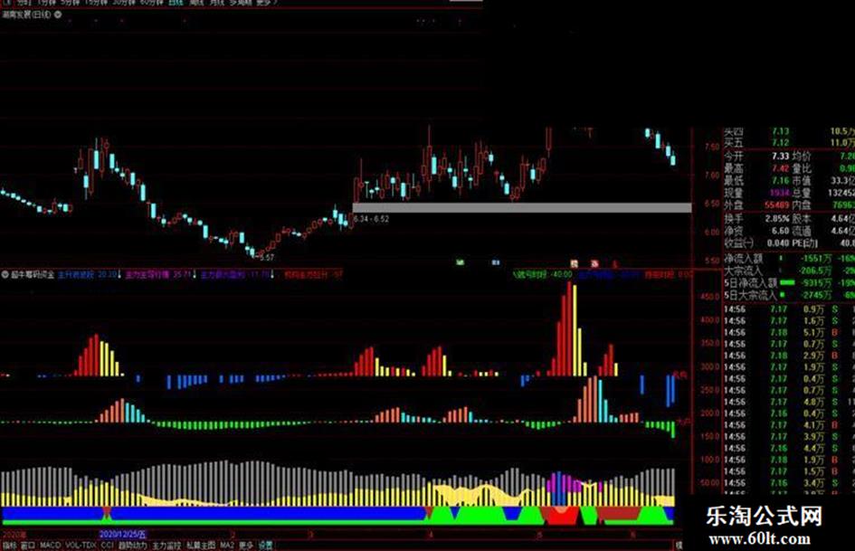 净资金流向:=EMA(100-(100/(1+SUM(IF(Y>REF(Y,1),Y*VOL,0),14)/SUM(IF(Y<REF(Y,1),Y*VOL,0),14))),5);