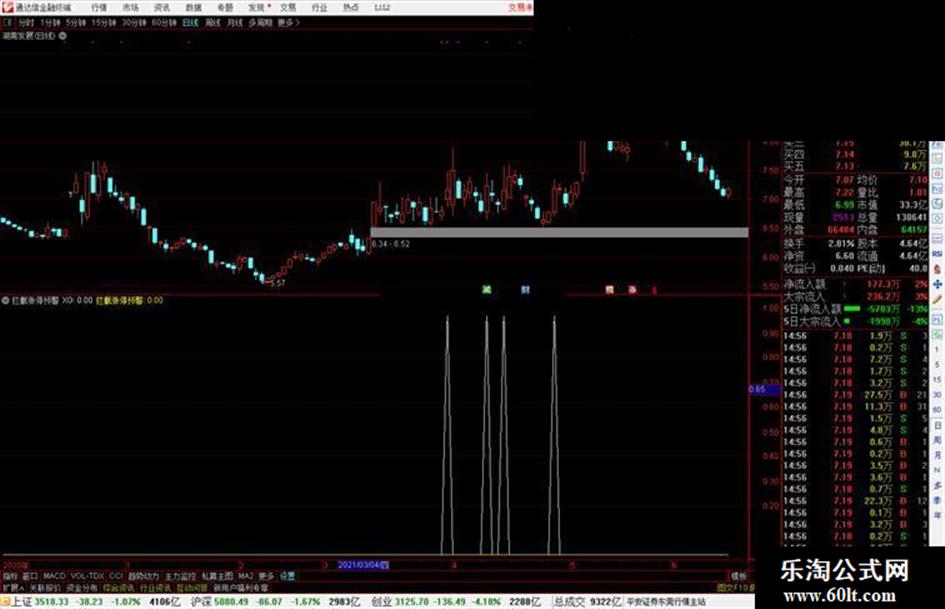 拦截涨停预警:Q<6 AND DYNAINFO(14)<0.05 AND IF(DYNAINFO(7)>地,1,0);