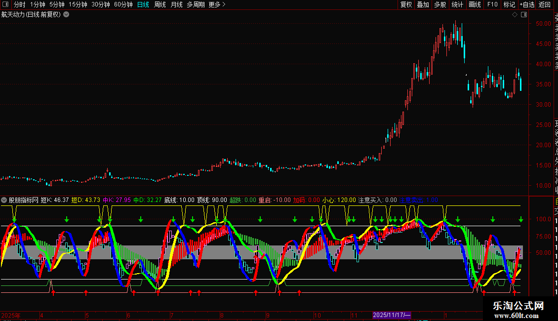 加码:IF(CROSS(中J,REF(中J+0.01,1)) AND BDDD AND BETWEEN(中J,20,60),1,0),COLORRED,NODRAW;