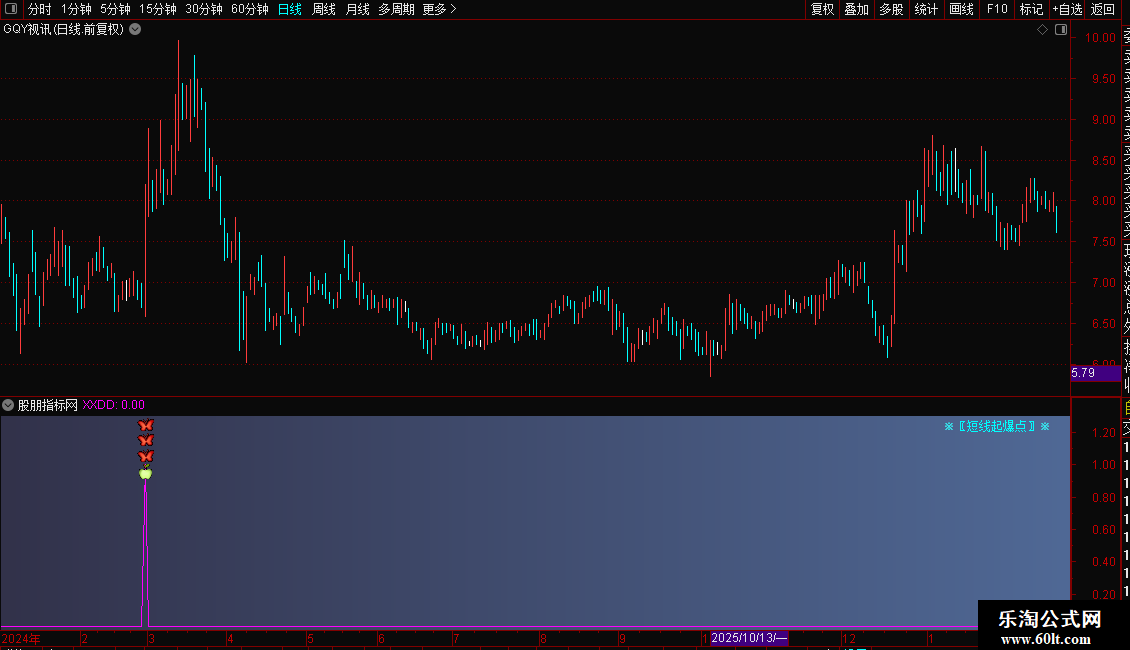 点7:=IF(CLOSE/REF(CLOSE,1)>1.050 AND HIGH/CLOSE<1.010 AND 点6>0, 91, 0);