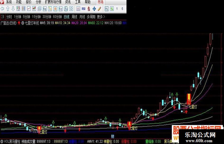 STICKLINE(七星灯>0,H,L,6,0),LINETHICK1,COLORRED;