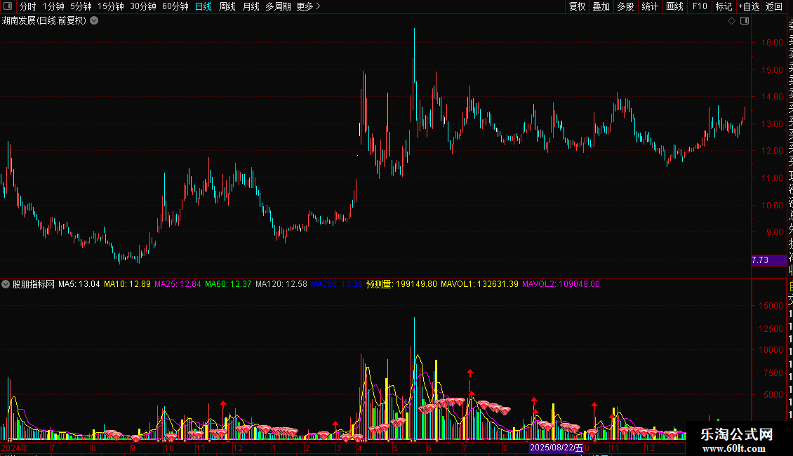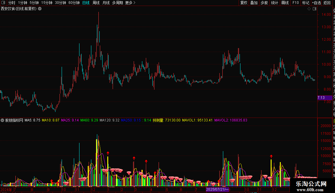 DRAWICON((MA(V,4)*4+V)/5>=MA(V,60) AND MA(V,5)<MA(V,60),预测量*1.2,1);