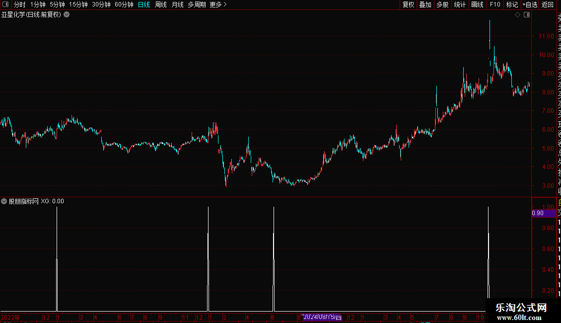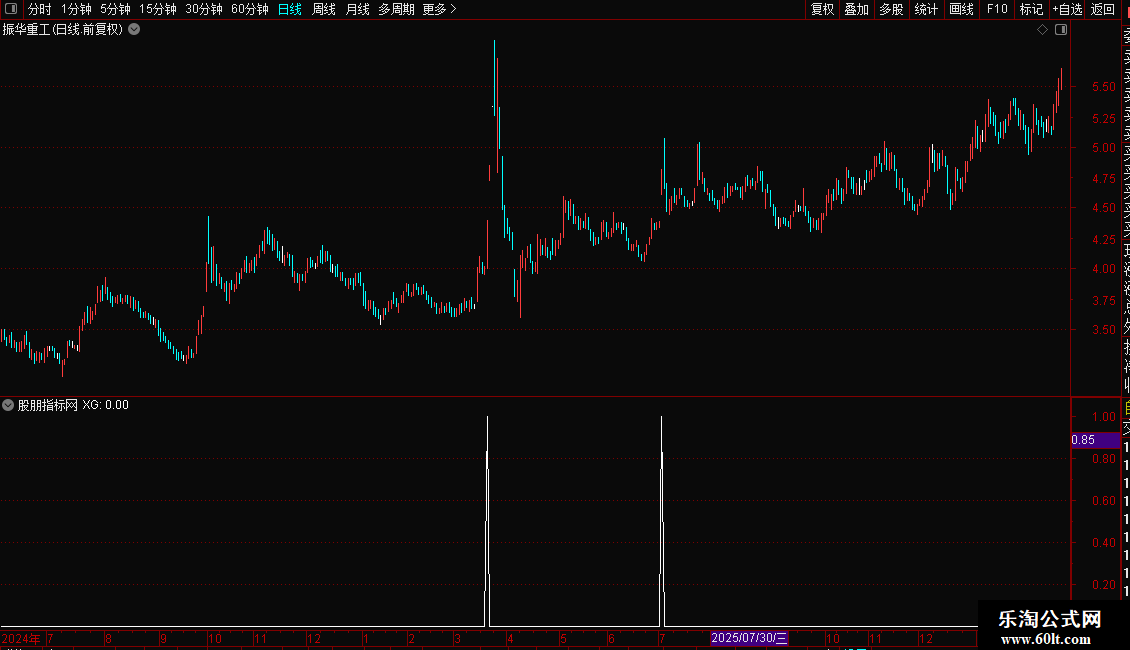 X_7:=CLOSE/REF(CLOSE,1)>1.048 AND CLOSE=HIGH AND BETWEEN(FORCAST(VOL,4),0.2*FORCAST(VOL,12),2.1*FORCAST(VOL,12));