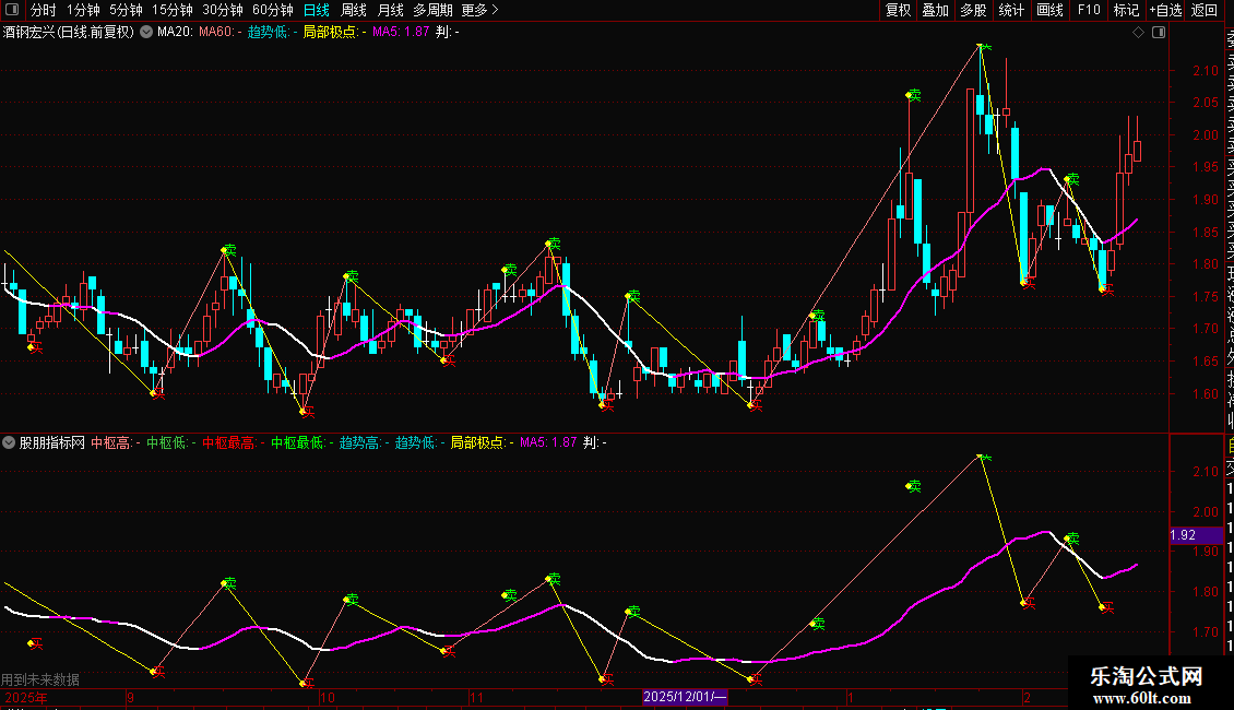 局部极点:IF(极点保留=-1,L,IF(极点保留=1,H,DRAWNULL)) CIRCLEDOT COLORYELLOW;