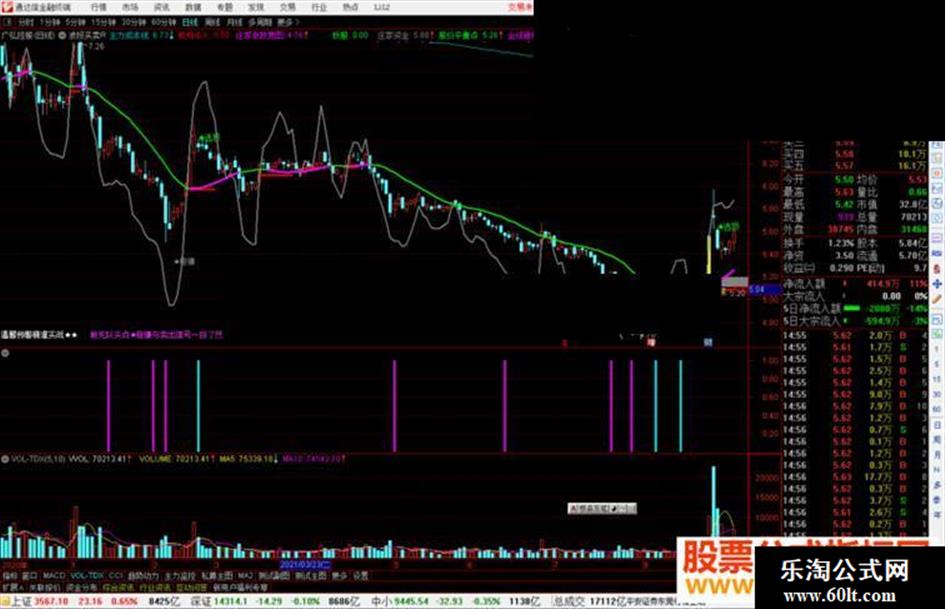 DRAWTEXT_FIX(1,0.12,1,0,'敢死队买点★稳赚与卖出信号一目了然'),COLORFF33FF;